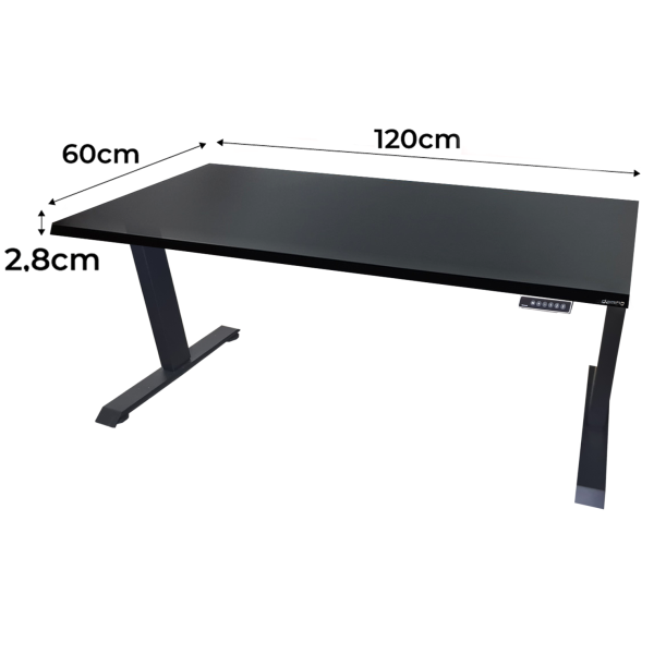 Oferta dotyczy czarnego biurka: 120x60x2.8 cm, seria LOW, MODEL 0, ELEKTRYCZNE
