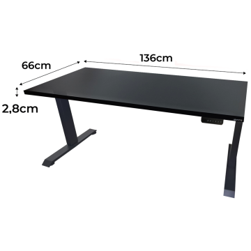 Oferta dotyczy czarnego biurka: 136x66x2.8 cm, seria TOP, MODEL 0, ELEKTRYCZNE