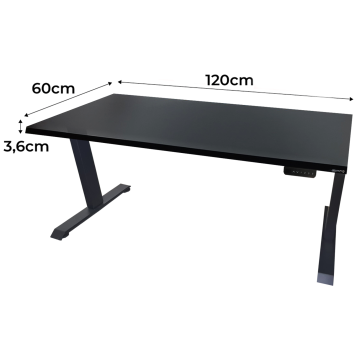 Oferta dotyczy czarnego biurka: 120x60x3.6 cm, seria TOP, MODEL 0, ELEKTRYCZNE