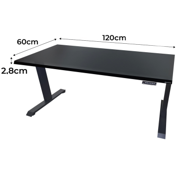 Oferta dotyczy czarnego biurka: 120x60x2.8 cm, seria TOP, MODEL 0, ELEKTRYCZNE