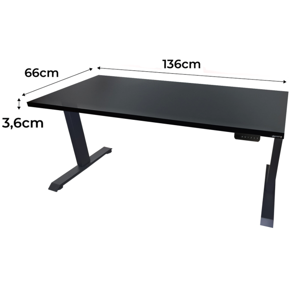 Oferta dotyczy czarnego biurka: 136x66x3.6 cm, seria TOP, MODEL 0, ELEKTRYCZNE