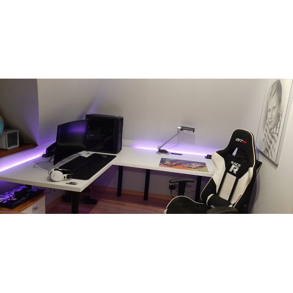 Biurko zostało wyposażone w designerską taśmę LED, która prezentuje się niezwykle estetycznie dzięki wpuszczeniu bezpośrednio w blat. LEDY posiadają aż 16 kolorów i 4 efekty świetlne do wyboru! W zestawie otrzymasz pilot do zdalnego sterowania kolorami. Dodatkowo taśma jest wodoodporna - o nic nie musisz się martwić!