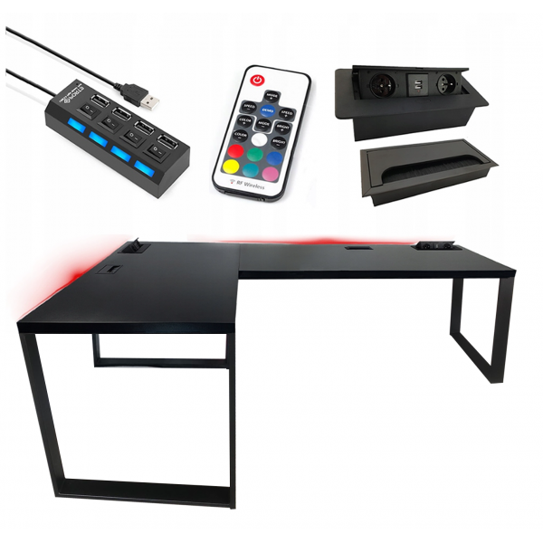 - Blat|Nogi|2xLedy |2xPrzepust kablowy|2xGniazdo 2x 230v 2x USB|2x4x HuB USB