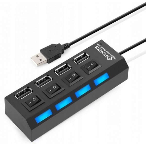 HUB USB: 4 wejścia USB z diodami. teraz nie zabraknie Ci wolnych miejsc USB