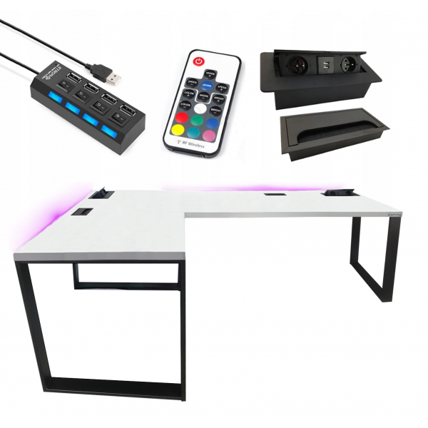 - Blat|Nogi|2xLedy |2xPrzepust kablowy|2xGniazdo 2x 230v 2x USB|2x4x HuB USB