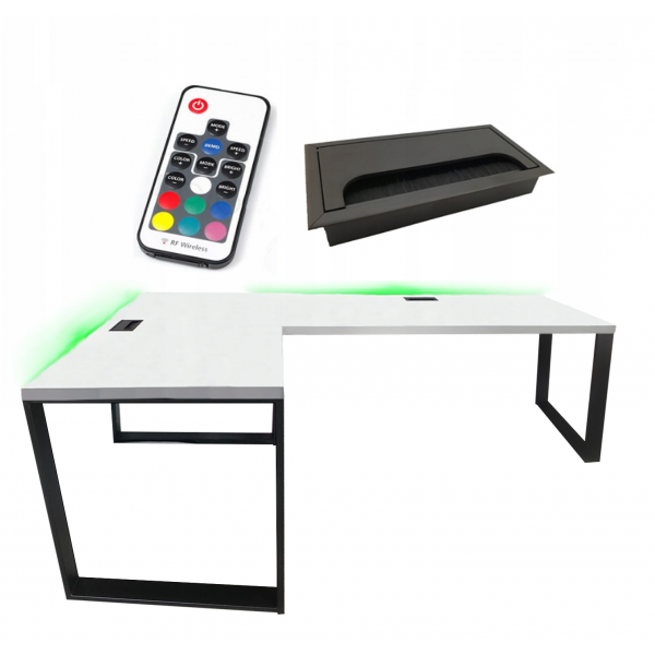 Biurko zostało wyposażone w designerską taśmę LED, która prezentuje się niezwykle estetycznie dzięki wpuszczeniu bezpośrednio w blat. LEDY posiadają aż 20 kolorów i 20 efektów świetlnych do wyboru! W zestawie otrzymasz pilot do zdalnego sterowania kolorami. Dodatkowo taśma jest wodoodporna - o nic nie musisz się martwić!