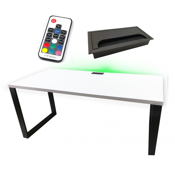 Biurko zostało wyposażone w designerską taśmę LED, która prezentuje się niezwykle estetycznie dzięki wpuszczeniu bezpośrednio w blat. LEDY posiadają aż 20 kolorów i 20 efektów świetlnych do wyboru! W zestawie otrzymasz pilot do zdalnego sterowania kolorami. Dodatkowo taśma jest wodoodporna - o nic nie musisz się martwić!