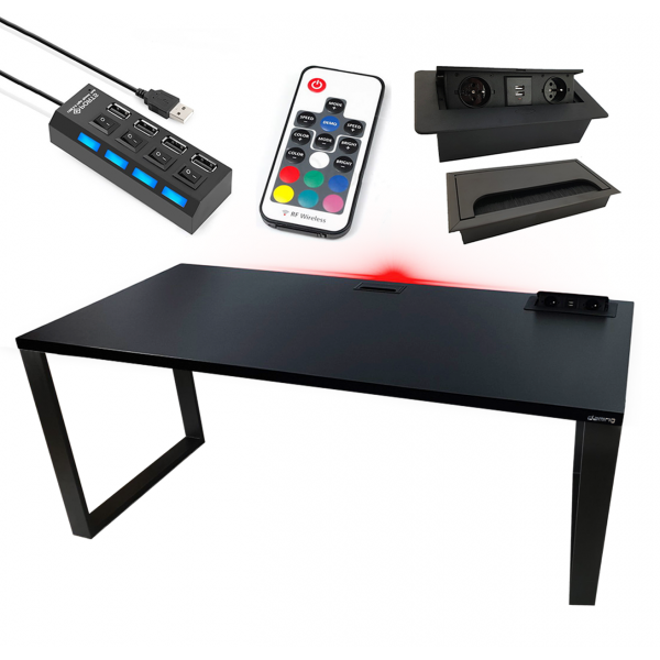 - 3 - blat, ledy, przepust, przepust, gniazdo 2x230v 2x USB, HUB USB 4x
