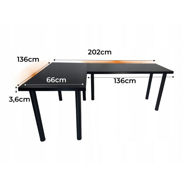 Oferta dotyczy czarnego biurka narożnego: 202x136x66 cm, seria LOW, MODEL 1