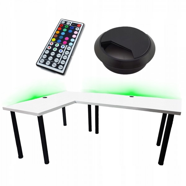 Biurko zostało wyposażone w designerską taśmę LED, która prezentuje się niezwykle estetycznie dzięki wpuszczeniu bezpośrednio w blat. LEDY posiadają aż 16 kolorów i 4 efekty świetlne do wyboru! W zestawie otrzymasz pilot do zdalnego sterowania kolorami. Dodatkowo taśma jest wodoodporna - o nic nie musisz się martwić!