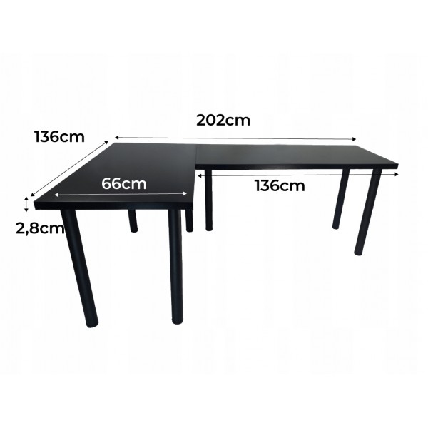 Oferta dotyczy czarnego biurka narożnego: 202x136x66 cm, seria LOW, MODEL 3