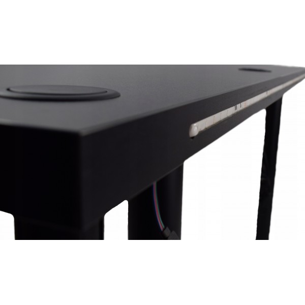 Biurko zostało wyposażone w designerską taśmę LED, która prezentuje się niezwykle estetycznie dzięki wpuszczeniu bezpośrednio w blat. LEDY posiadają aż 16 kolorów i 4 efekty świetlne do wyboru! W zestawie otrzymasz pilot do zdalnego sterowania kolorami. Dodatkowo taśma jest wodoodporna - o nic nie musisz się martwić!