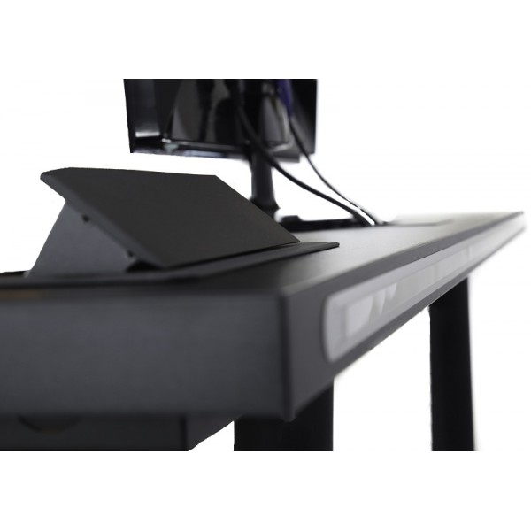 Biurko zostało wyposażone w designerską taśmę LED, która prezentuje się niezwykle estetycznie dzięki wpuszczeniu bezpośrednio w blat. LEDY posiadają aż 20 kolorów i 20 efektów świetlnych do wyboru! W zestawie otrzymasz pilot do zdalnego sterowania kolorami. Dodatkowo taśma jest wodoodporna - o nic nie musisz się martwić!