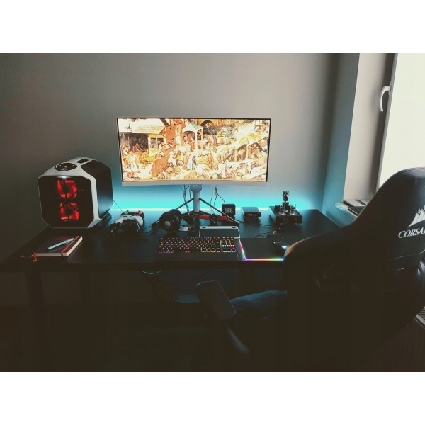 Biurko zostało wyposażone w designerską taśmę LED, która prezentuje się niezwykle estetycznie dzięki wpuszczeniu bezpośrednio w blat. LEDY posiadają aż 16 kolorów i 4 efekty świetlne do wyboru! W zestawie otrzymasz pilot do zdalnego sterowania kolorami. Dodatkowo taśma jest wodoodporna - o nic nie musisz się martwić!