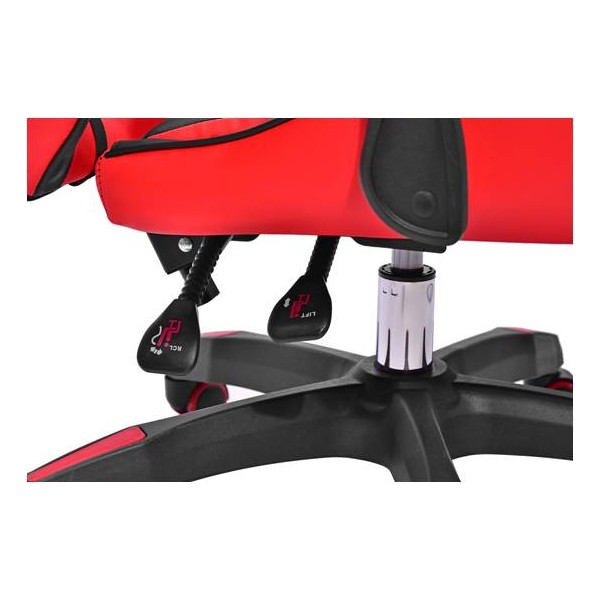 2. REGULACJA OPARCIA FOTELA - Dźwignia pozwalająca na łatwą regulację kąta pleców do 160 stopni, dla optymalnej pozycji siedzącej podczas ogólnego użytkowania i grania oraz leżącej podczas wypoczynku. Wyposażone w dźwignię zapewniającą natychmiastowe podniesienie i opuszczanie siedziska