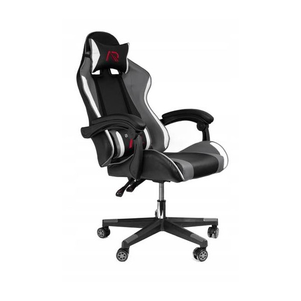 FOTEL GAMINGOWY SZARO - CZARNY + PODKŁADKA
