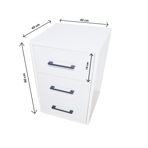 KONTENEREK POD BIURKO DO SZAFY Z 3 SZUFLADAMI NA KÓŁKACH BIAŁY DAMING